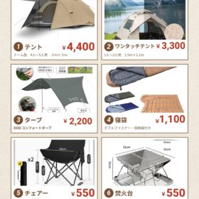 キャンプ用品レンタルのご案内
